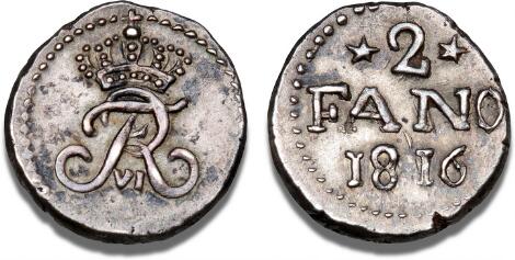 901/203Frederik VI, 2 fano 1816, UBJ 360, Sieg 90, KM 173 - fremragende eksemplar af denne ualmindelige type