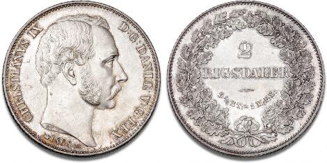 901/1872 rigsdaler 1863, H 3, KM 770 - smukt eksemplar af denne type, der prægedes i anledning af tronskiftet