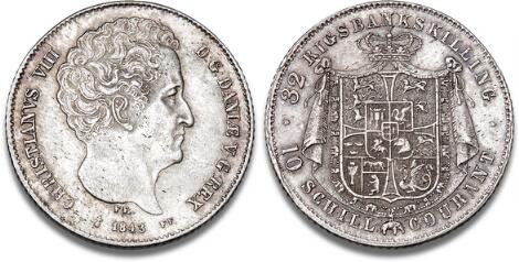 901/18432 rigsbankskilling 1843 FF / FF, H 5B, S 6, KM 734
