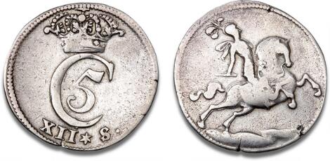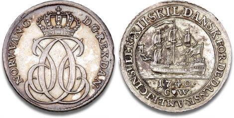 901/190Christian VI, 12 skilling 1740, H 1, S 5, C 3, KM 4