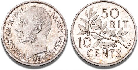 901/199Christian IX, 50 bit / 10 cents 1905, H 33, S 6, Sieg 28, KM 78
