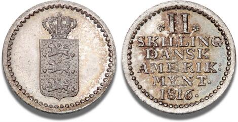 901/195Frederik VI, Dansk-Amerikansk Mønt, 2 skilling 1816, H 12, S 6, Sieg 11.1, KM 13