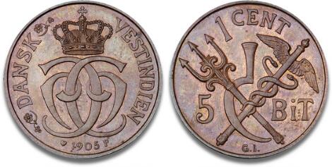 901/200Christian IX, 5 bit / 1 cent 1905, H 36, S 9, Sieg 25, KM 75
