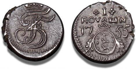 901/202Frederik V, royalin 1755, UBJ 235, Sieg 67, KM 146 - usædvanlig velcentreret eksemplar