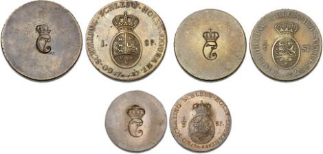 901/180Slesvig-Holsten, sæt af 3 stk. møntvægtlodder i messing. (3)