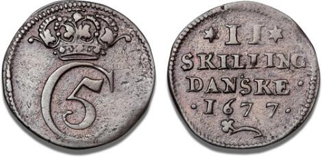 901/2122 skilling 1677, Christiania, NMD 147, H 54, S 30