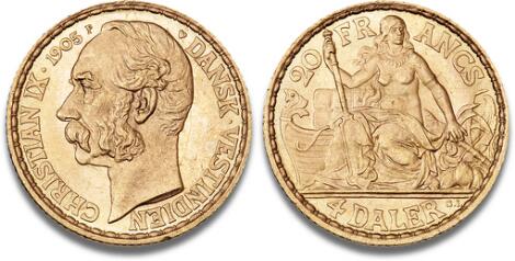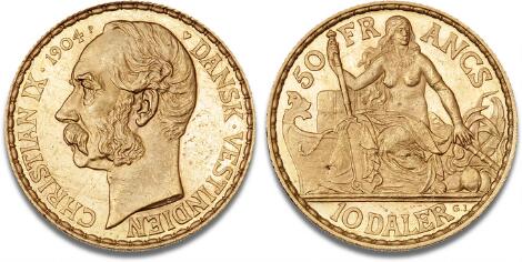 901/197Christian IX, 50 francs / 10 daler 1904, H 29, S 5, Sieg 32, F 1, KM 73