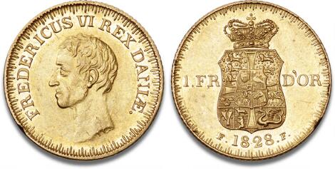 901/181Frederik d'or 1828 IFF, Altona, H 4A, F 287 - Freunds sjældne étårstalstype