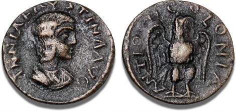 901/356Annia Faustina, 221 AD, third wife of Elagabalus, AE 15, Pisidia, Antioch, ANTIOCH COLONIA, 2.41 g