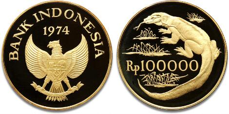 901/373100000 Rupiah 1974, F 6, KM 41, Wildlife Conservation series, "Komodo Dragon" - 1,369 Proofs minted, graded by PCGS, PROOF-69 DEEP CAMEO