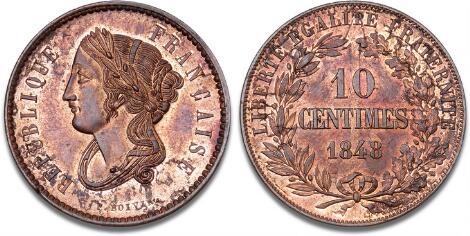 901/331France, pattern, 10 Centimes 1848, Boivin, G. 219b, struck on Sweden, 18th cent. 1 øre, arrow is e.g. seen above '10'