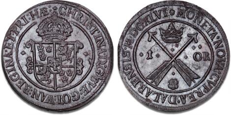 901/3271 Öre 1646, Avesta, SM 111 (medal alignment), cf. Delzanno 202 (REGINA) - choice