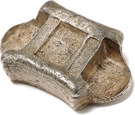 901/375Qing Dynasty, Yunnan Province, 5 Tael silver Sycee ND, Cribb Class LXVI, three stamp pack-saddle style remittance ingot