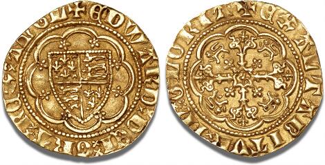 901/362Edward III, 1327 - 1377, Quarter-Noble, ND (1361 - 1369) London, mintmark, Cross potent, S 1510, F 97