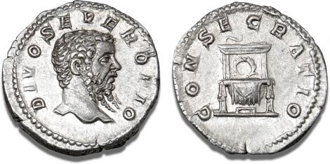 901/355Septimius Severus, 193 - 211 AD, Consecration Denarius struck under Caracalla, Rome, 211 AD, RIC 191e, C 87
