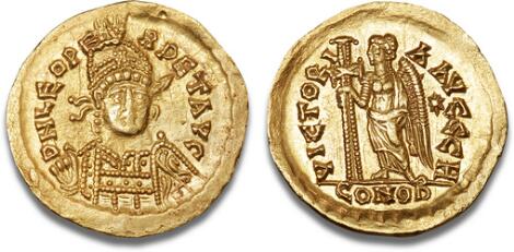 901/357Leo, 457 – 474 AD, Constantinople, Solidus, DOC 518, RIC 605, 4.43 g. Beautiful specimen.