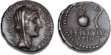 901/351C. Cassius and Cornelius Lentulus Spinther, Denarius, 43 - 42 BC
