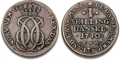 901/304Christian VI, skilling 1740, H 3, S 8, Sieg 1, C 1, KM 2 - fint eksemplar af denne sjældne étårstalstype