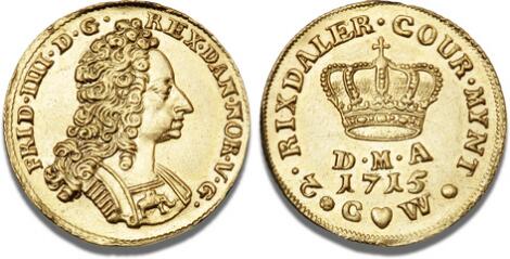 901/277Kurantdukat / 2 rixdaler 1715, H 31, S 1, F 221 - ualmindeligt årstal