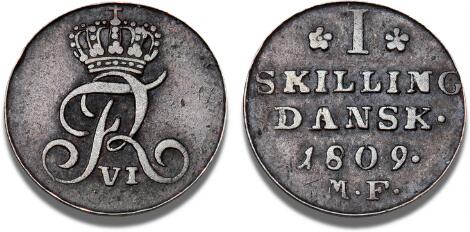 901/295Skilling 1809, H 7, Sieg 1.2, S cfr. 10a - særdeles sjælden prøvemønt præget i ring