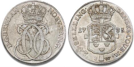 901/28024 skilling 1735, H 7B, S 2 - sjældent årstal i fin kvalitet