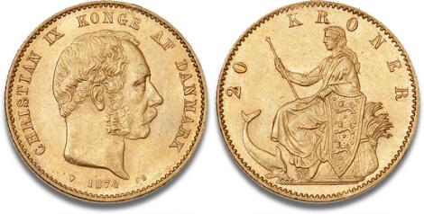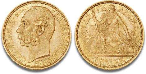 901/307Christian IX, 20 Francs / 4 Daler 1904, H 30, F 2, KM 72