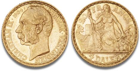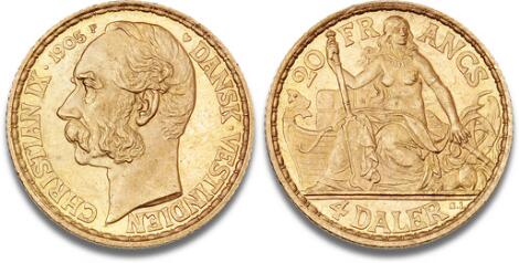 901/308Christian IX, 20 Francs / 4 Daler 1905, H 30, F 2, KM 72