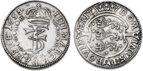 901/2684 mark / krone 1653, H 91B, S 39, Aagaard 17.1, Dav. 3570A - smukt eksemplar af den sjældne "Michaelskrone"