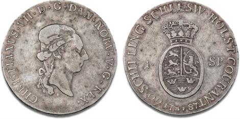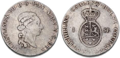 901/290Speciedaler 1787 B/MF, Altona, H 39A, FP SH9.2 - uhyre sjælden fejlmønt med CSHLESW (ikke SCHLESW) på reversen