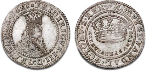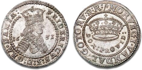901/2671/2 krone 1651, H 86, Aagaard 118.1 - kabinetseksemplar af ualmindelig étårstalstype
