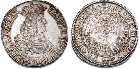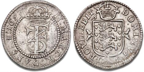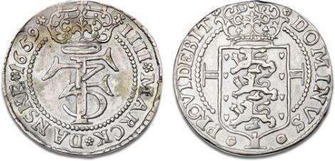 901/2694 mark / krone 1659, H 95A, Aagaard M59-1 (59-1/59-2) - særdeles sjælden "Mysteriekrone"