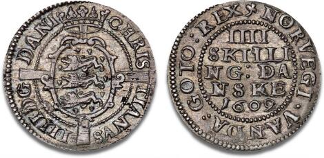901/2574 skilling 1609, H 78A, S 34 - usædvanlig smukt eksemplar af Schwabes sjældne, københavnske fireskilling