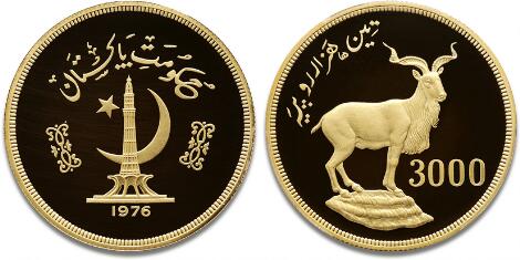 901/3813000 Rupees 1976, F 1, KM 44, Wildlife Conservation series, "Astor Markhor" - only 273 Proofs minted, graded by PCGS, PROOF-69 DEEP CAMEO
