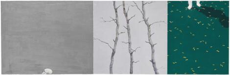 Michael Kvium: "Natural dead ends", 2008. Signed, titled and dated on the reverse. Triptych. Oil on canvas. 120 x 371 cm. Unframed.