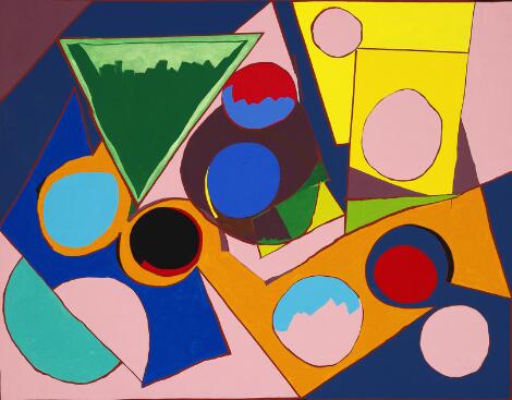 Richard Mortensen: "Filitosa", 1961. Signed, titled and dated on the reverse. Oil on canvas. 114 x 145 cm.