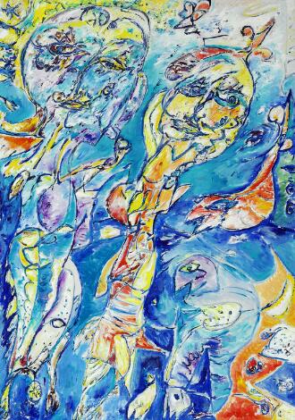 Pierre Wemaëre: "Zephir", 1990. Signed P. Wemaëre; signed, titled and dated on the reverse. Oil on canvas. 130 x 97 cm.