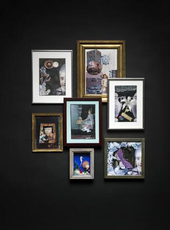 Torben Hardenberg: Two dioramas and five collages. Signed Hardenberg and with dedications. Mixed media on paper. Variable sizes. (7)