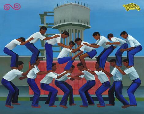 Joydip Sengupta: "Parallel Express". Signed and titled on the reverse. Oil on canvas, two parts. Each part 236 x 148 cm. Overall 236 x 296 cm. Unframed. (2)
