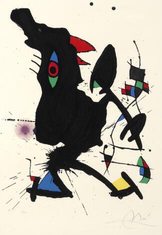 Joan Miró: "Le Corbeau Vizir", 1973. Sign. Miró, 49/50. Litografi i farver. Bladstørrelse 90 x 61.