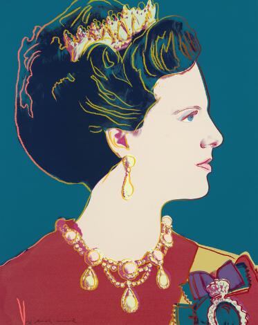 Andy Warhol: "Queen Margrethe II" fra suiten "Reigning Queens", 1985. Sign. Andy Warhol, 29/40. Serigrafi i farver. Bladstørrelse 100 x 80.
