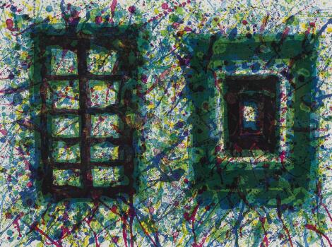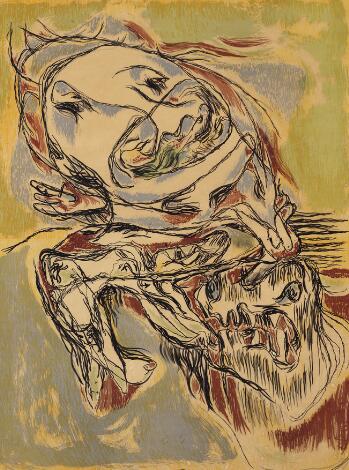 Asger Jorn: "Caput Mortuum", 1953. Usign. Litografi i farver, to delt. Lysmål 118 x 88.