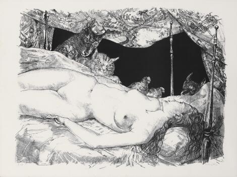 Tsuguharu Léonard Foujita: "Le Rêve", 1947. Sign. Foujita, E.A. Litografi. Bladstørrelse 56 x 75. Uindrammet.