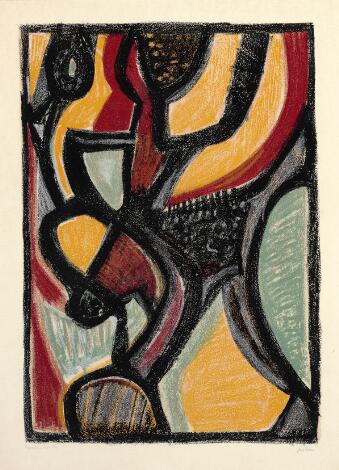 Maurice Estève: "Folerie", 1975. Sign. Estève, 6/75. Litografi i farver. Bladstørrelse 67 x 50.