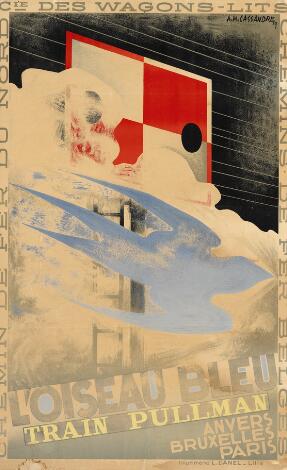 Adolphe Mouron Cassandre: "L'Oiseau bleu". Sign. i trykket A.M. Cassandre 29. Litografisk plakat i farver. Trykt hos L. Danel, Lille, Paris. Lysmål 99 x 61.