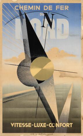 Adolphe Mouron Cassandre: "Chemin de Fer du Nord". Tryksign. A.M. Cassandre 29. Litografisk plakat i farver. Bladstørrelse 62 x 100.