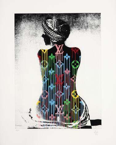 Zevs: "Liquidated Louis Vuitton Murakami/Man Ray". Sign. Zevs, 2016, 23/30. Ætsning i farver. Bladstørrelse 145 x 115.