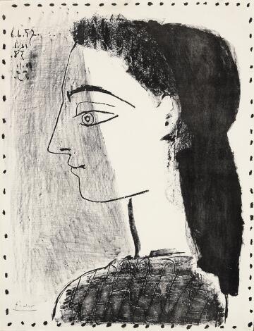 Pablo Picasso: "Jacquelin au Mouchoir Noir", 1959. Sign. Picasso, 18/50. Litografi. Bladstørrelse 65 x 50.