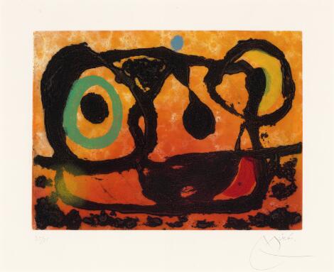 Joan Miró: "Tête au Soleil Couchant", 1967. Sign. Miró, 35/75. Ætsning i farver. Lysmål 39 x 47.