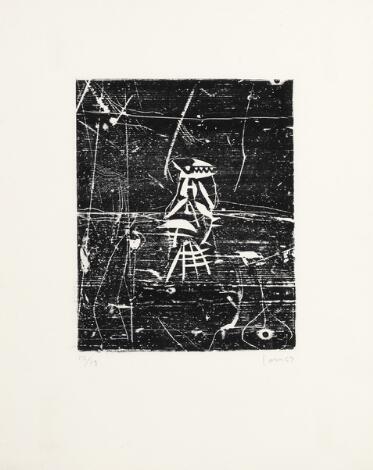Asger Jorn: "Coupures de table". Sign. Jorn 67, 12/13. Træsnit. Bladstørrelse 57 x 45.