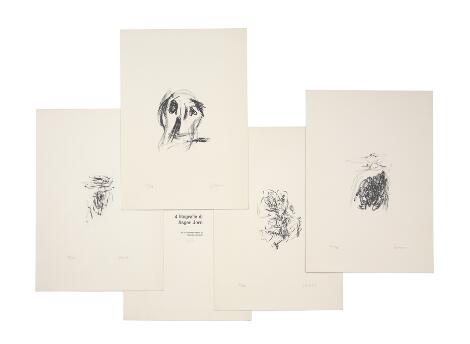 Asger Jorn: "Il Ridotto". Grafisk mappe indeholdende fire litografier. Sign. Jorn 61, 41/90. Bladmål 50 x 34,5.